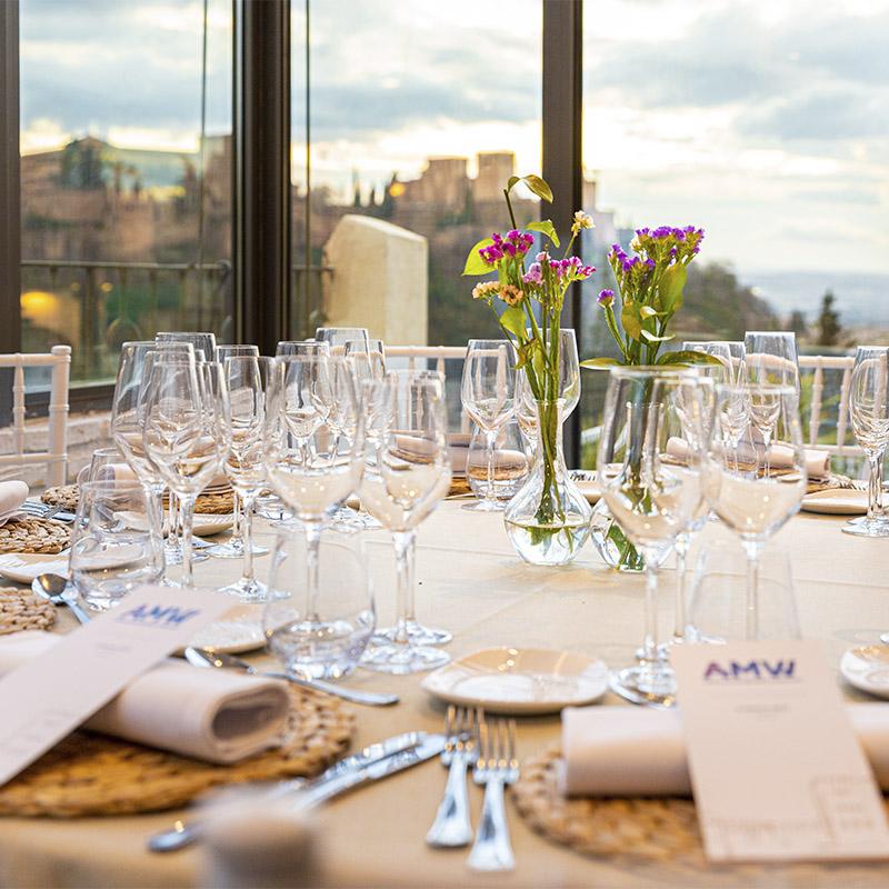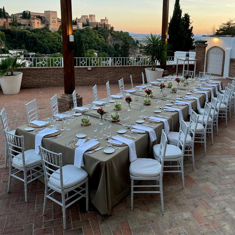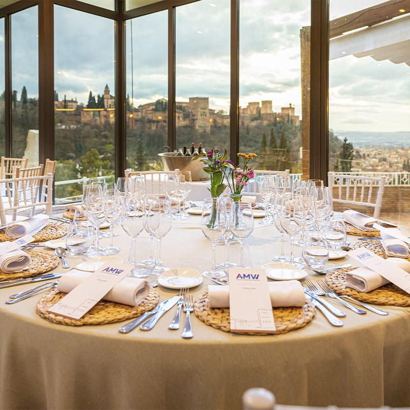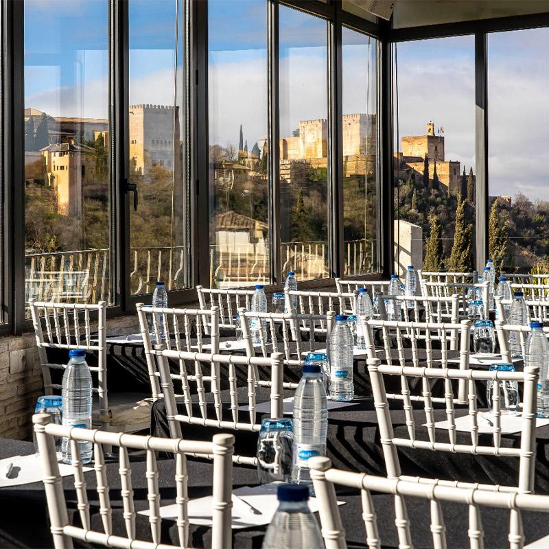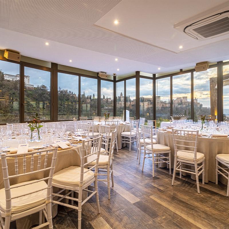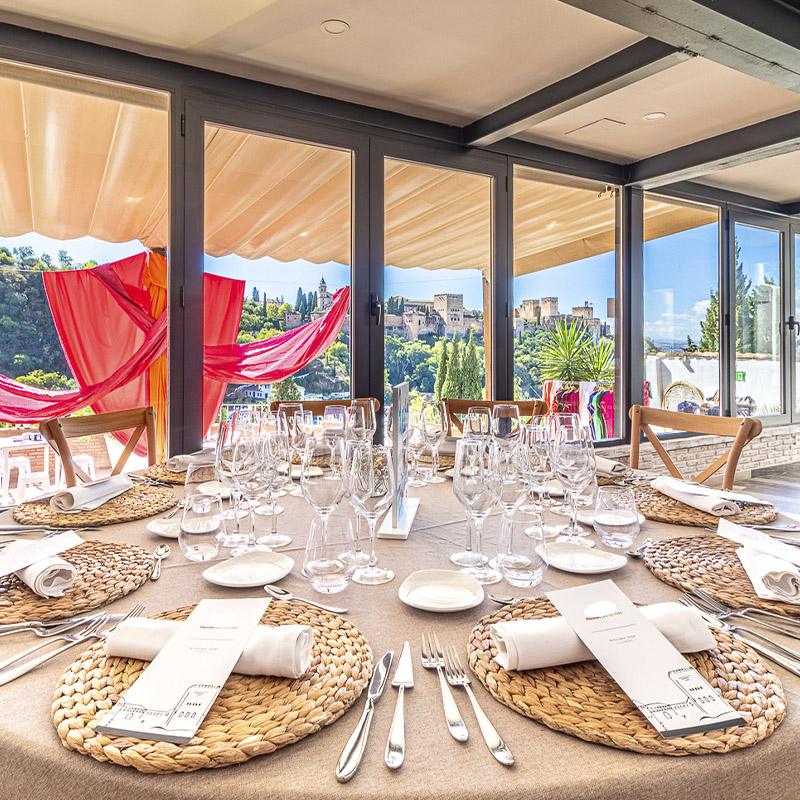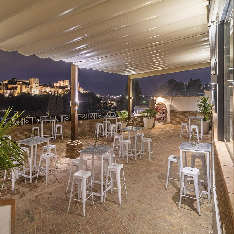 Sorprende a tus invitados en un entorno emblemático con vistas a la Alhambra. Este icónico paisaje será el telón de fondo perfecto para tu evento, aportando un valor añadido inolvidable.
