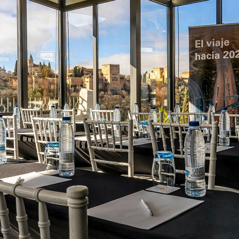 Celebra tu evento corporativo en un enclave privilegiado con la mejor panorámica de la Alhambra. Desde congresos y presentaciones de productos hasta actividades de team building, reuniones estratégicas o cenas de gala, en El Camborio ponemos a tu disposición espacios versátiles y un servicio impecable para que tu evento sea un éxito.